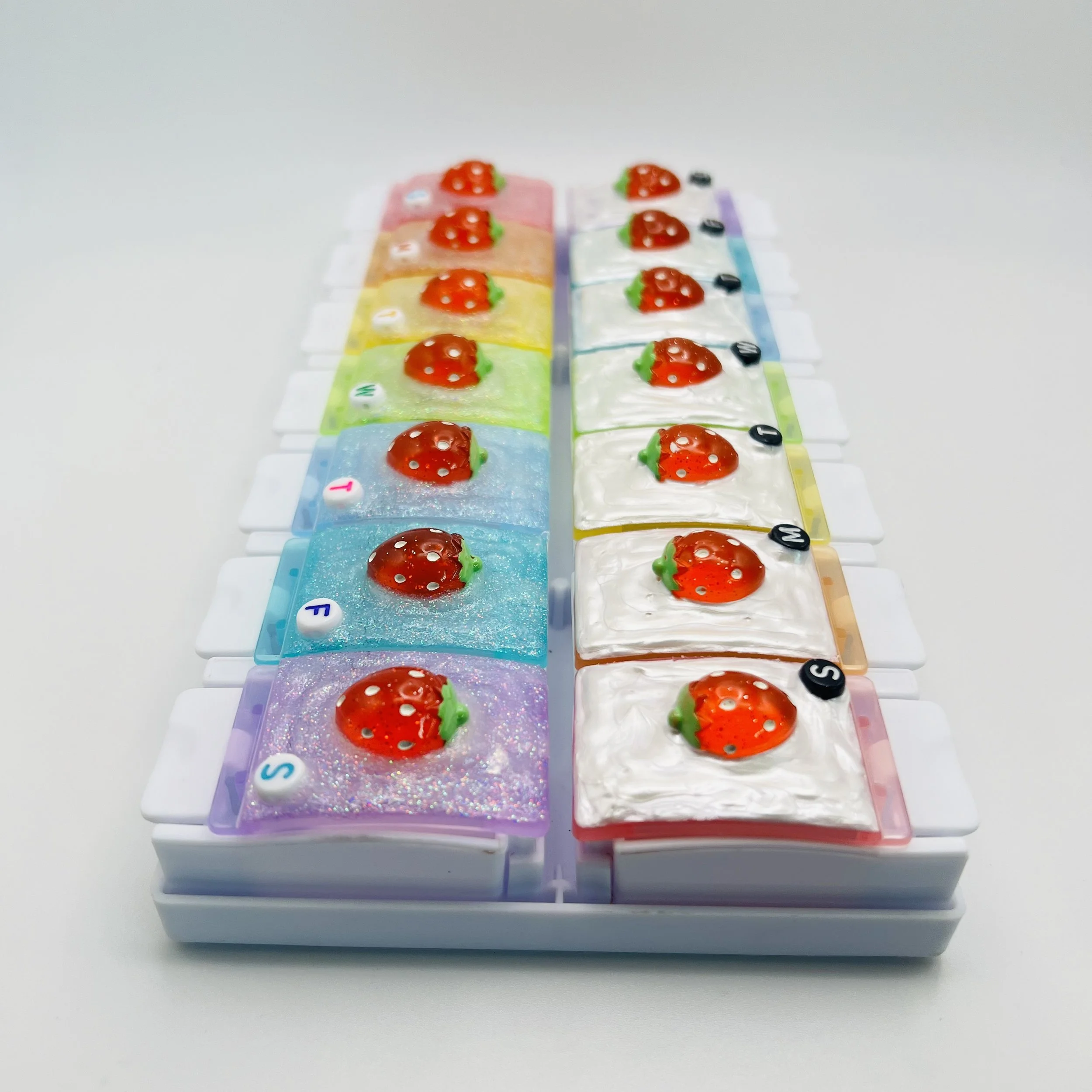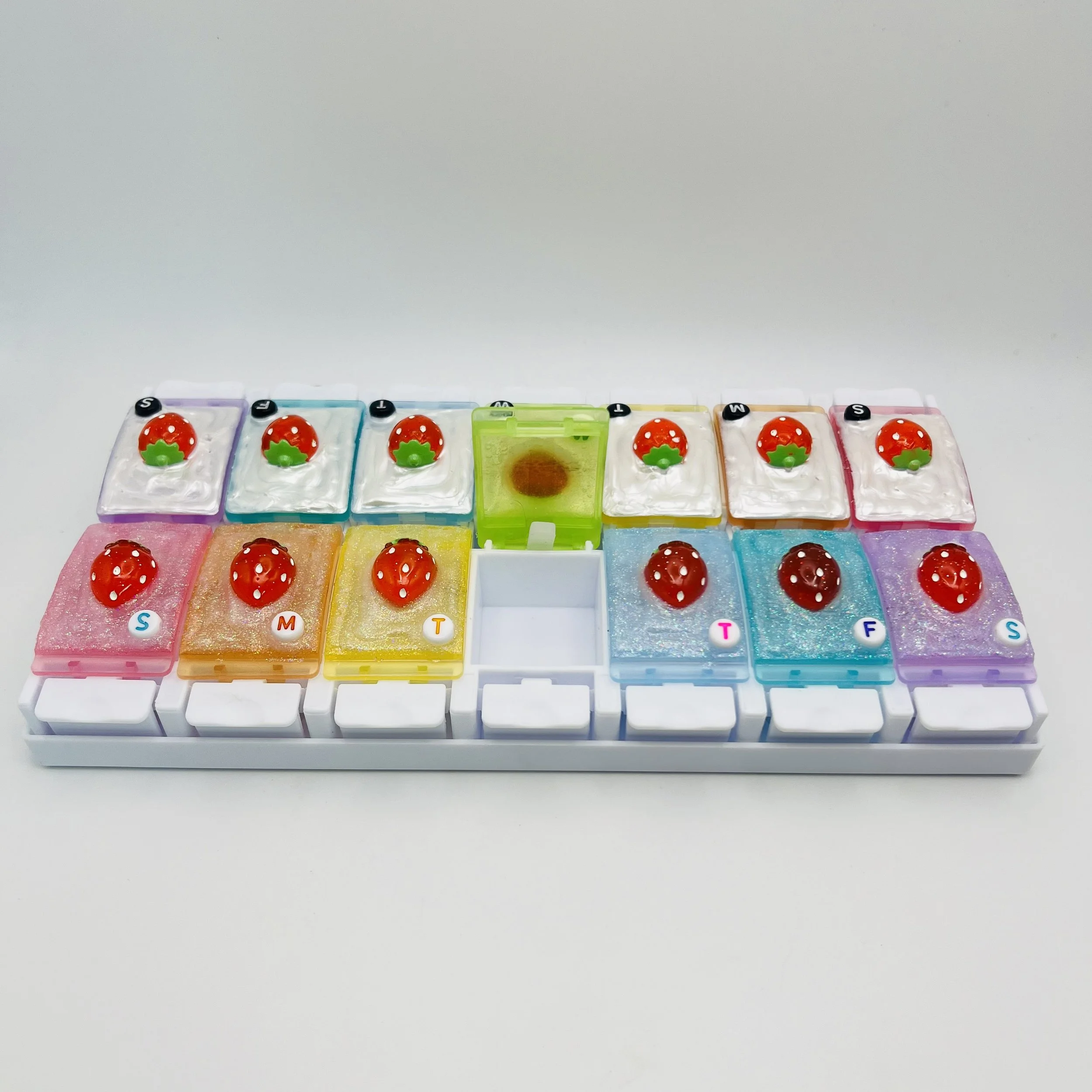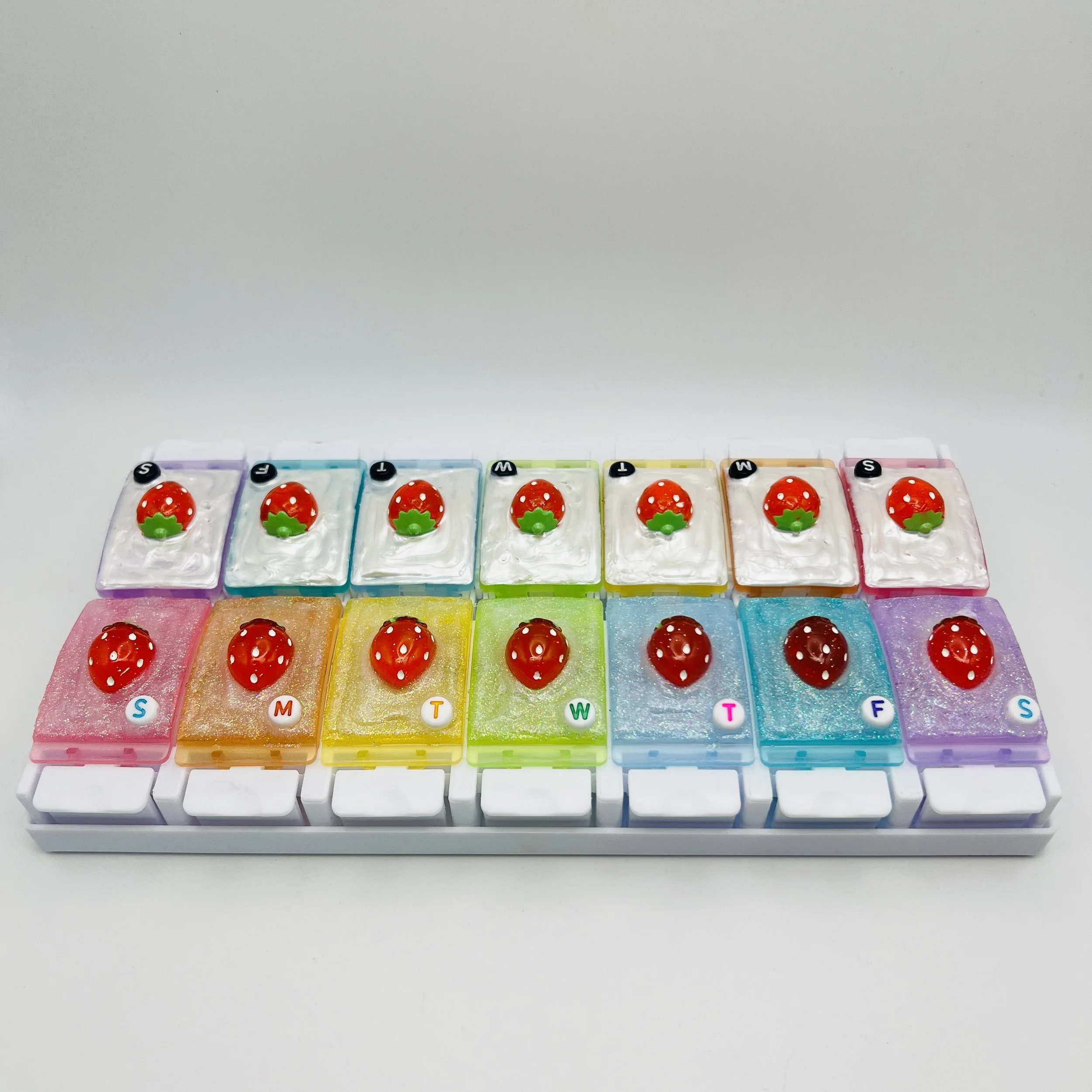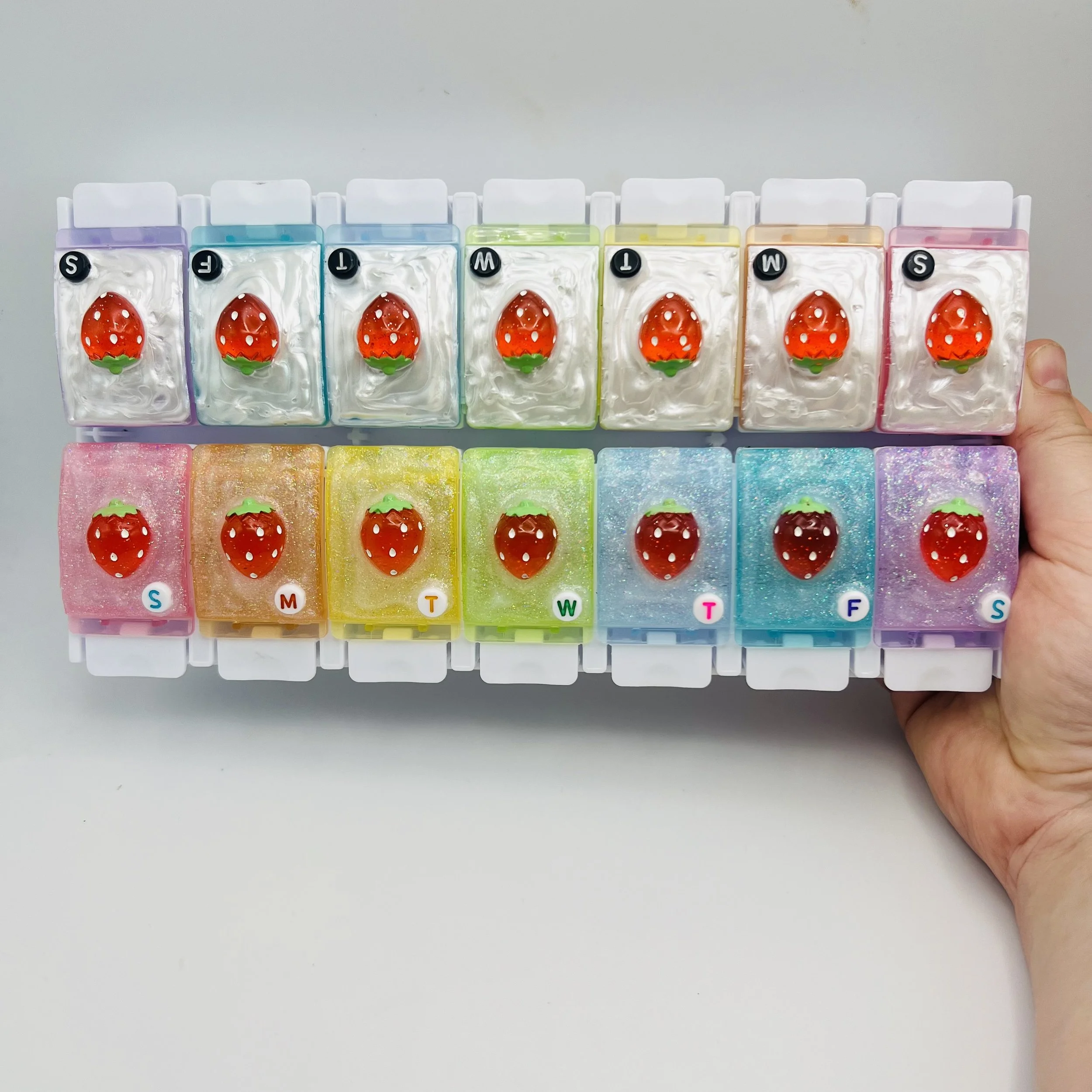 The cutest twice a day pill organizer you’ve ever seen!! And—each row can come out of the holder for even more versatility!
